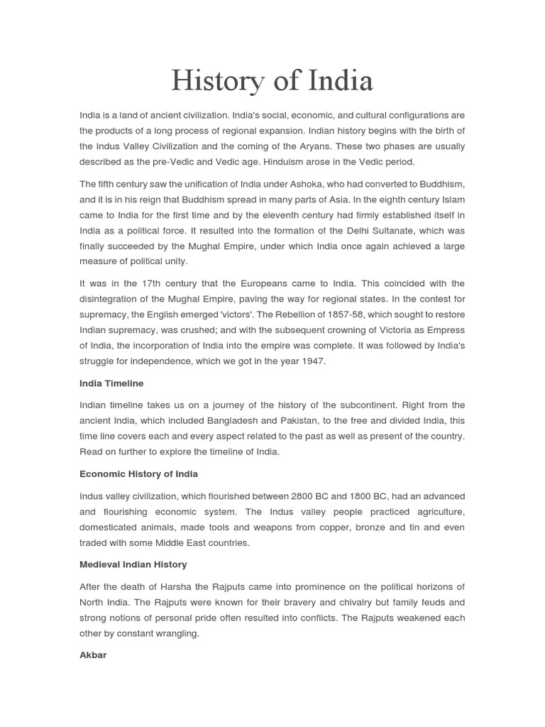 It is divided into the early medieval period and into the late medieval. Occupation of the panjab by the marathas. Transition of india from medieval to modern period under the rule of east india. But that civilization was not created by one people, race, or ethnic group, and it doesn't make sense to see india's history as the history of one indian people.