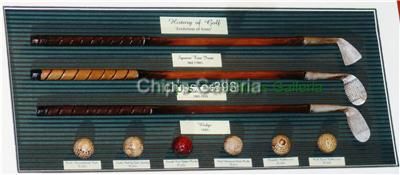 History of golf shadow box golf balls and clubs memorabilia man cave 3d. The display case also features images of golfers in driving stance including one of bobby jones. Perfect gift for the golf fan.